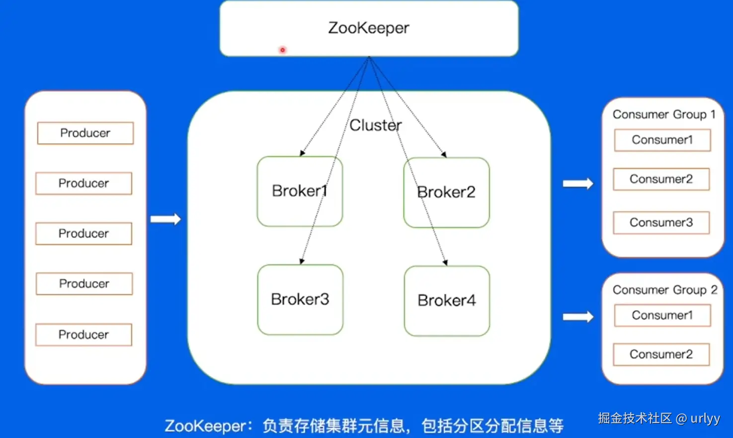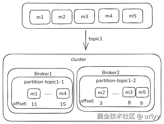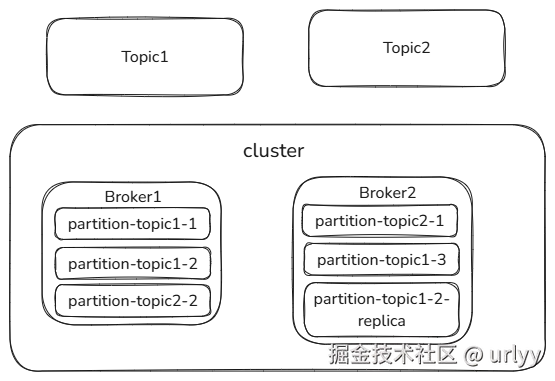 Broker为存放消息的服务。一个Cluster中可以有多个Broker。