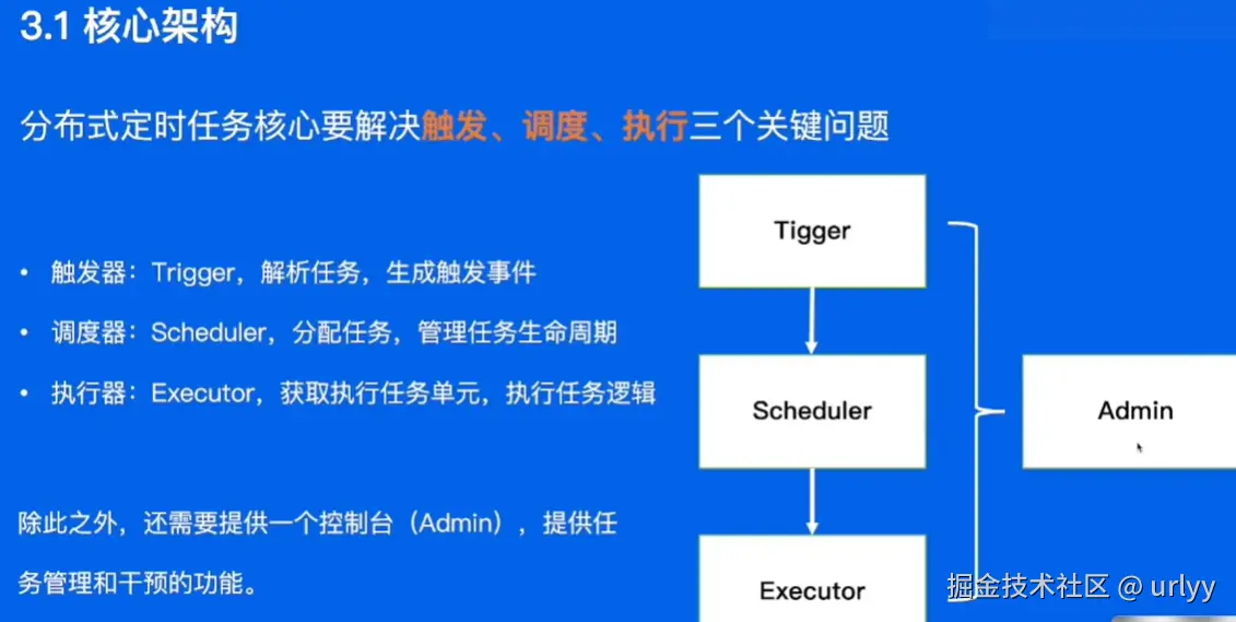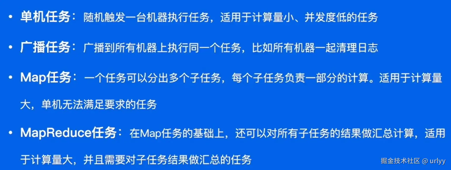 - 定时:特定时间触发(每天零点、每小时的第五分钟)。