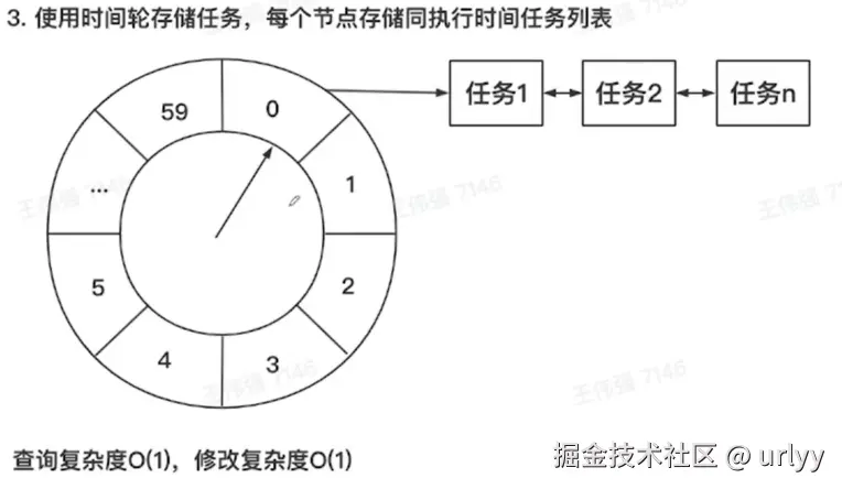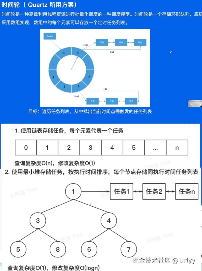 下面的这个时间轮挺有意思,这里讲了方案的演进,即一开始是遍历链表,然后改成查询较快的小顶堆。